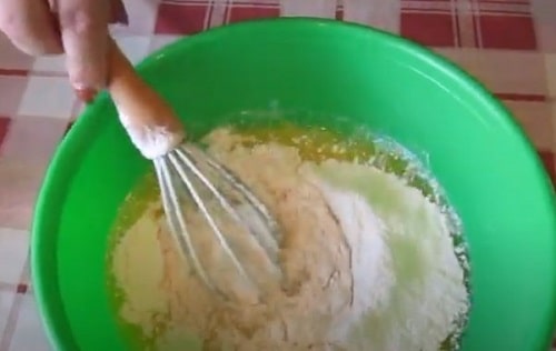 - Добре перемішати масу, почніть підсипати муку. Кожну нову порцію старанно розмішуйте, розбиваючи утворилися грудки.