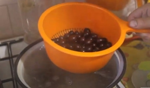 - Закип’ятіть воду, влийте до ягід. Потримайте чверть години для гарного прогріву ягід.