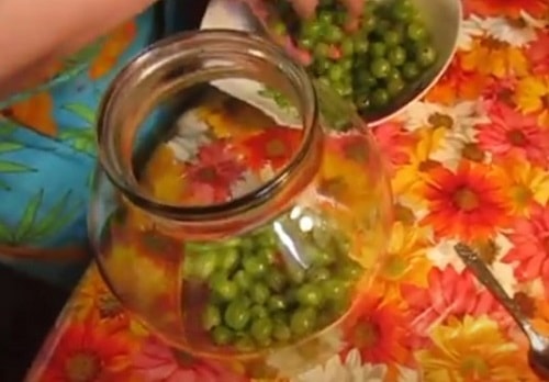 - Технологія заготівлі крыжовенного компоту мало відрізняється від попередніх рецептів. закладіть в банки чисту ягоду і гілочки з листочками м’яти.