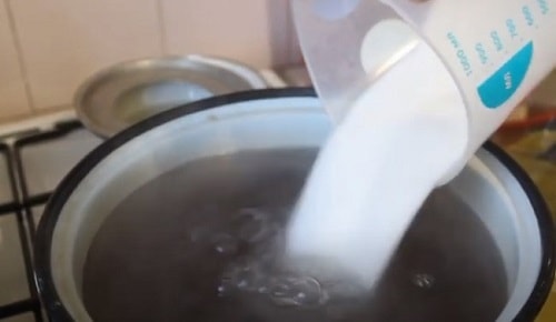 - Закип’ятіть, додавши цукровий пісок. Проваріть кілька хвилин, щоб гранули розчинились.
