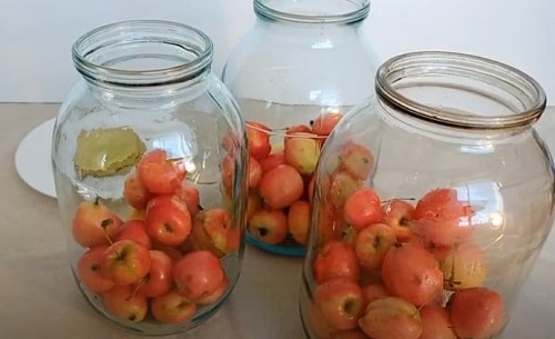 Закип'ятіть необхідну кількість води. Залийте в ранетки. Залиште приблизно на 5 хвилин, щоб цілі плоди заспівали прогрітися, а бульбашки повітря вийти назовні. Обов'язково прикрийте кришками.