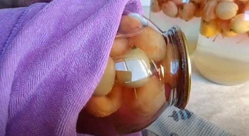 - Засукайте під залізну або кручені кришку. поставте вгору денцем, накрийте пледом. Коли заготовка охолоне, заховайте в льох.