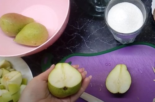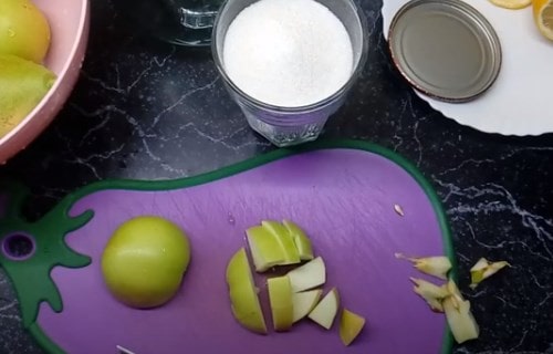 - Наріжте фрукти часточками, видаливши насіннєву коробку.