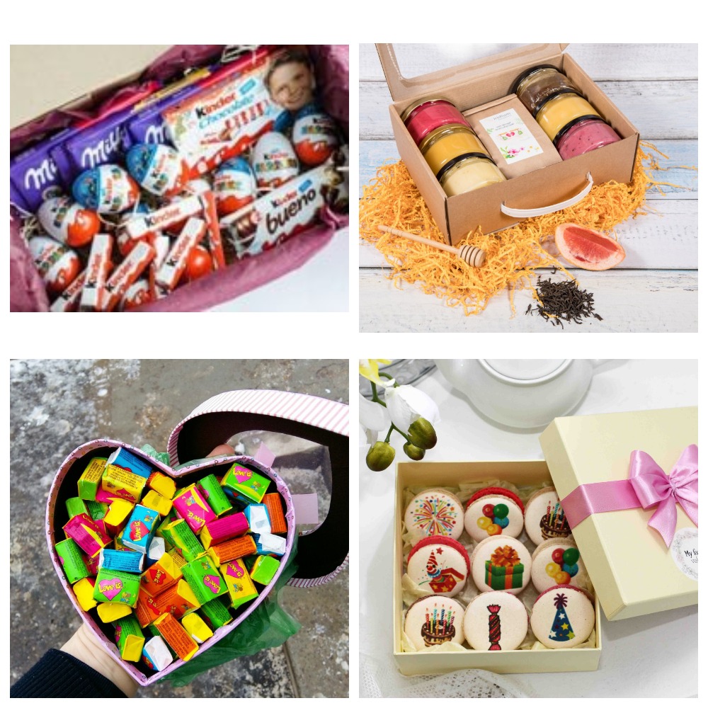 - Якщо солодкий бокс несе ще й естетичну функцію, постарайтеся зробити так, щоб солодощі спокійно виймалися і з’їдалися, не зіпсувавши конструкцію. Адже вона може радувати своїм зовнішнім виглядом обдарованого ще довго. Або використовуватися за іншим призначенням – в ній можна зберігати приємні дрібниці.