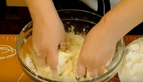 Почніть перемішувати руками, зробивши масу однорідною, щоб масло ввібрало в себе солодкість.