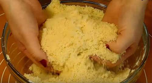- Розтирайте масу руками, поки не утворюється дрібна крихта.
