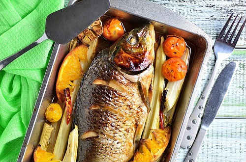 З прісноводних риб, короп дзеркальний вважається найсмачнішим. Короп, запечений у духовці цілком — одночасно смачне, ситне і неймовірно красиве блюдо. Виглядає по-королівськи, тому з давніх часів у багатьох народів стало традицією готувати цю рибу на свята. Всім відомий різдвяний короп, але і в інші урочистості запечена риба здатна прикрасити стіл і стати головною фішкою.