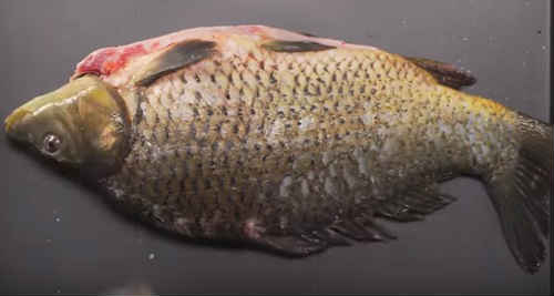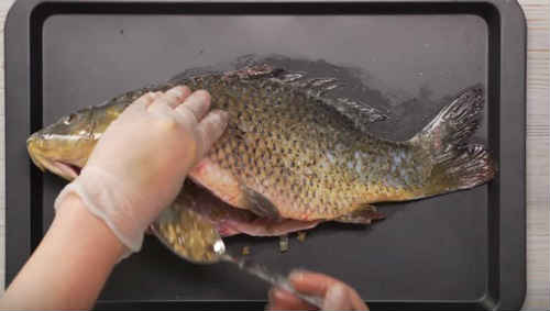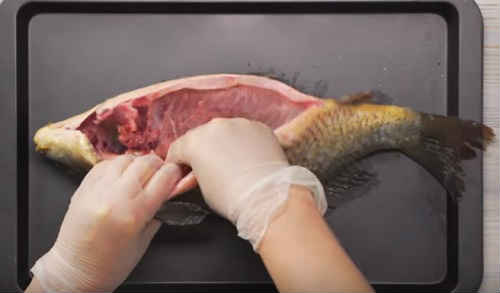 - Підготуйте дзеркального коропа до запіканню: випатрайте, почистіть від луски, видаліть зябра.