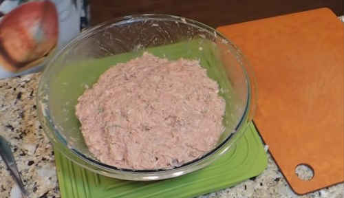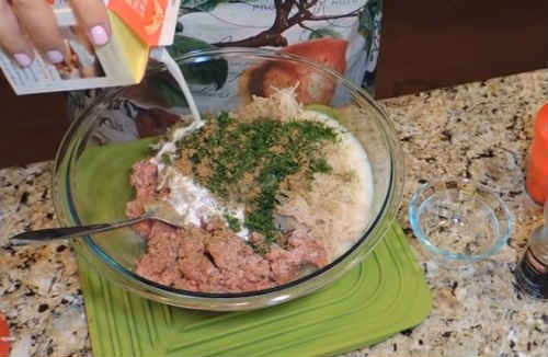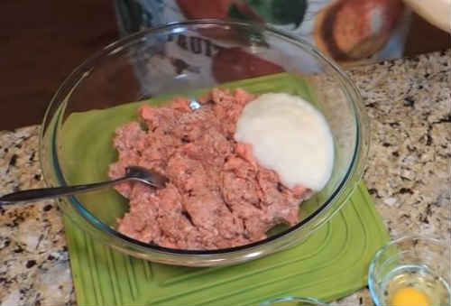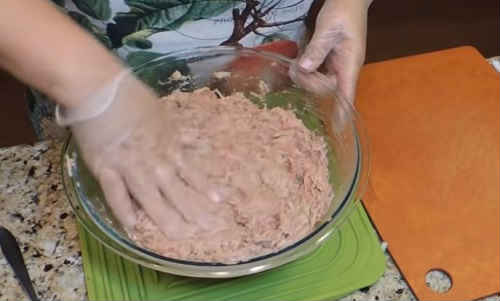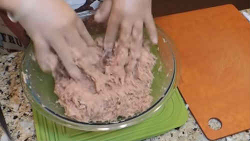 Ретельно перемішуйте масу рукою, поки фарш не «схопиться».