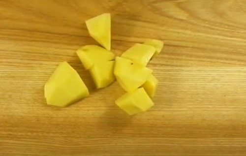 Почистіть і наріжте бульби картоплі.