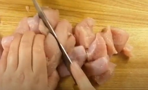 Порубати філе індички невеликими шматочками.