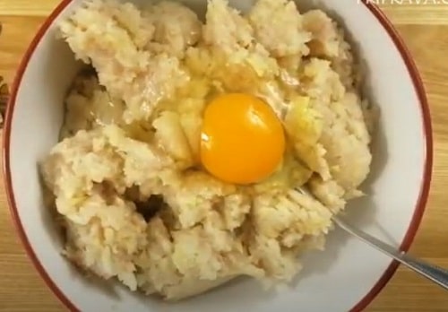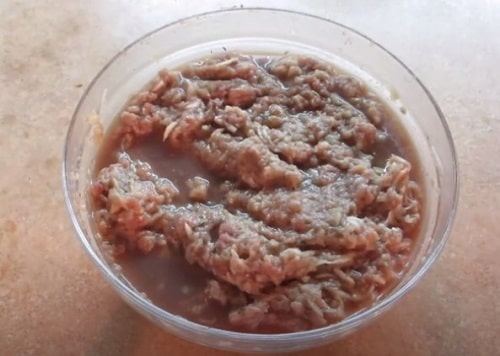 Перемішайте, якщо фарш вийде досить рідким, це не помилка, так повинно бути.