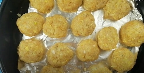 - Зліпити круглі биточки, викладіть на деко, застелене фольгою або пергаментом. Запікайте при 180 ° С протягом 30 хвилин.