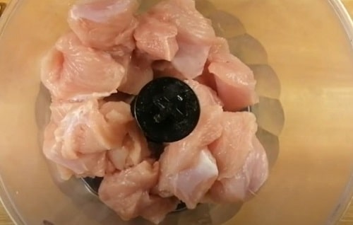 - Проверните грудку індички через м'ясорубку або порубати блендером.