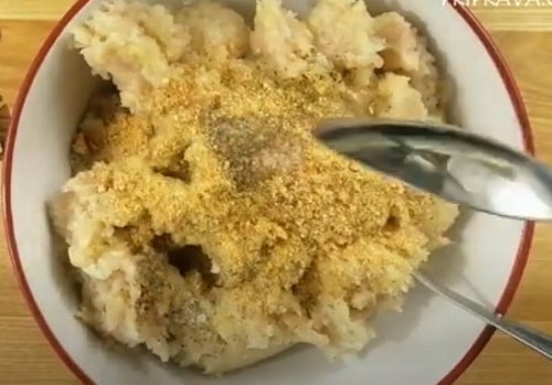 - Перетворіть філе в фарш, додайте яйце, приправи для індички, сіль.
