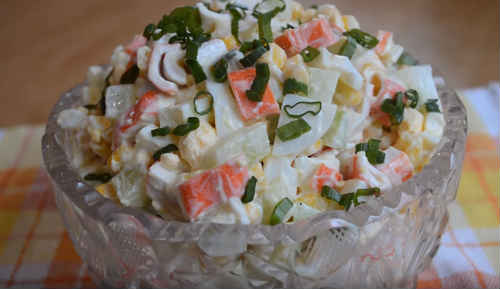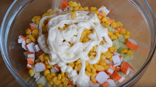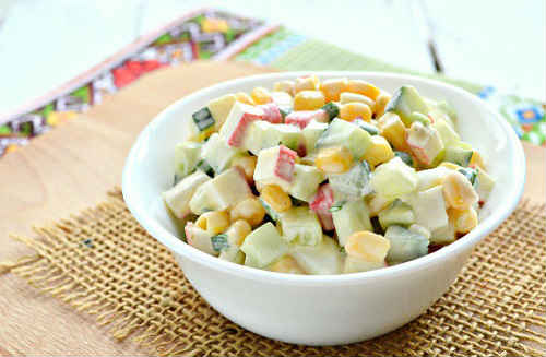 Класичний крабовий салат з огірком і кукурудзою — рецепт з фото