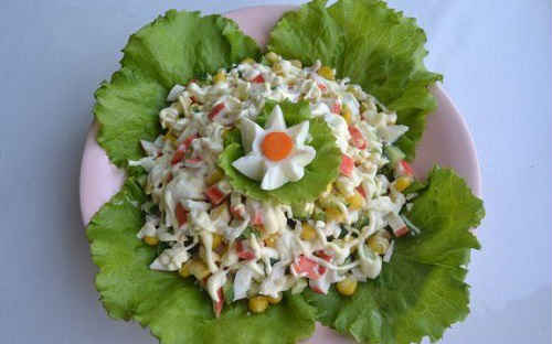 - 9 Крабовий салат з огірком, кукурудзою з сиром