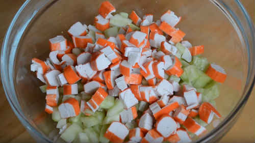 - 5 Святковий листковий крабовий салат зі свіжим огірком і рисом