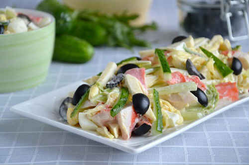 Салат з огірками, крабовими паличками і сиром — відео-рецепт