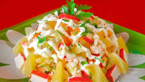 Страви з додаванням фруктів стали вже звичними. Ананаси відмінно уживаються з м’ясом сурімі, надаючи їм досить цікавий смаковий відтінок страви.
