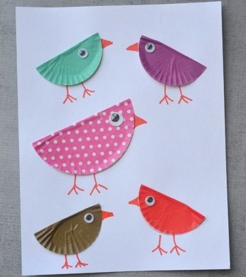 З ганчірок і паперових серветок, можна зробити зграйку пташок.