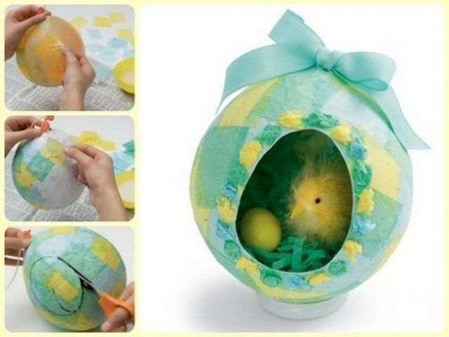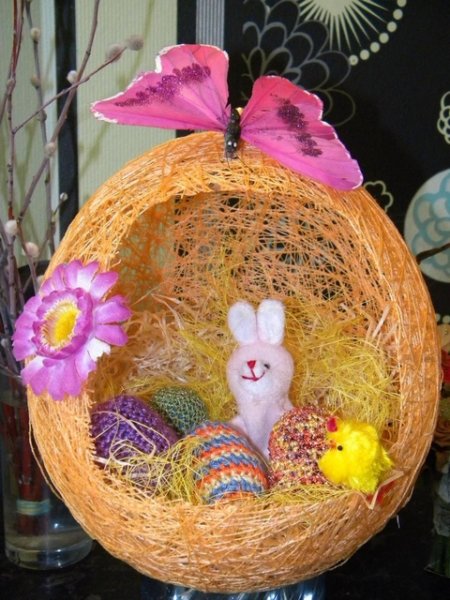 Залишилося тепер красиво розмалювати кулька, а всередині прикрасити і посадити або зайчика, або курчати, або щось ще.