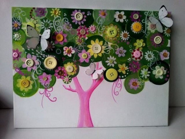 А, повертаючись знову до такого матеріалу, як гудзики, використовуючи їх, можна зробити красиве дерево: