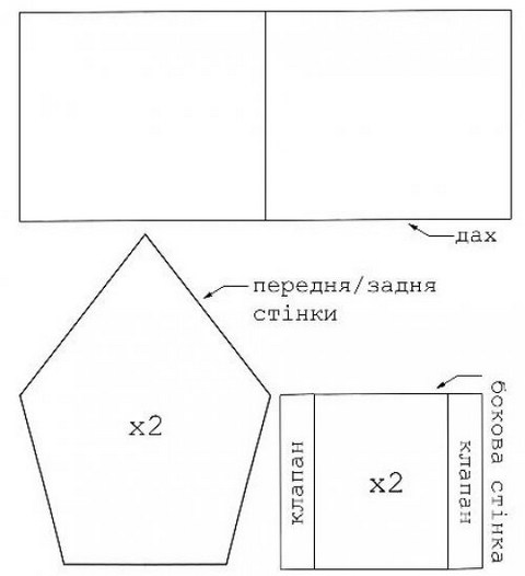 - Шаблони об’ємної вироби з картону Будиночок для пташок