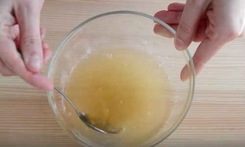 Потім розпустіть кристали. Для цього поставте миску на плиту, повільно прогрівайте вміст, не забуваючи помішувати. Не перегрейте желатин.