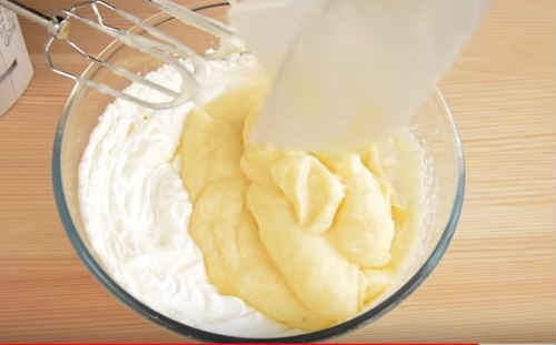 З’єднайте вершки з холодним кремом. Попрацюйте міксером, припинивши суміш в однорідну масу.