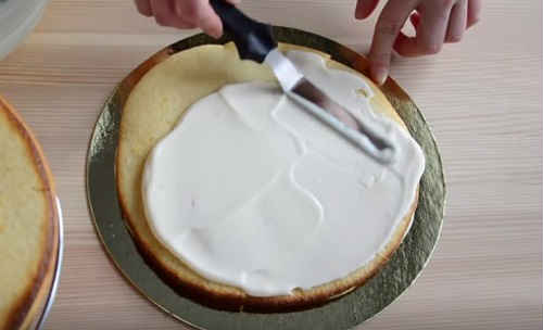 Далі використовуйте крем за призначенням для змащування коржів в торті.