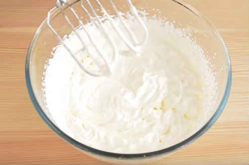- Дістаньте вершки, на повній потужності збийте міксером в щільну піну.