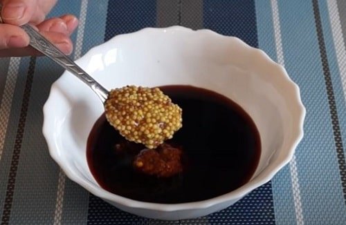 Покладіть по ложечці меду і зернистої гірчиці.