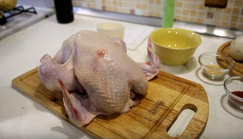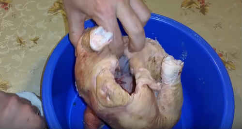 Якщо домашня курочка, обпалити тушку, промийте, трохи підсушіть паперовим рушником.