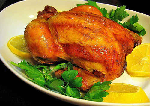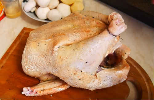 Запікаємо цілу курку в духовці у фользі з чорносливом