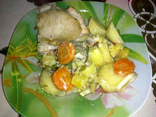 - 2 Курка з картоплею, овочами і грибами в рукаві
