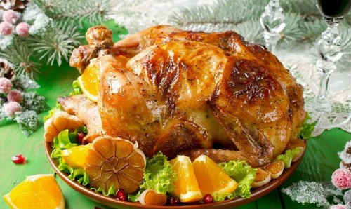 Рецепт запікання цілої курки фаршированої апельсином, рисом і чорносливом
