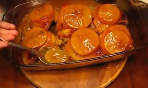 Разом, обидва фрукта дають незвичайний смак курячого м’яса. Відмінне блюдо для включення у святкове меню.