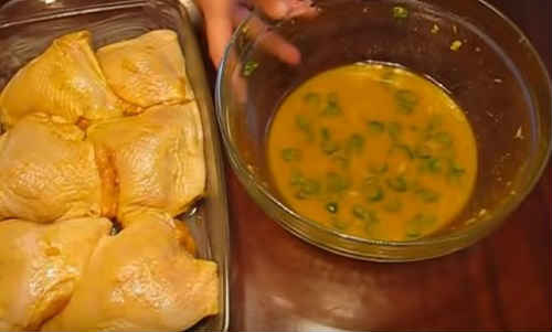 - Натріть сумішшю курячі стегна, залиште на столі хвилин на 30.