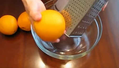 За допомогою дрібної терки зніміть з 3 апельсинів цедру, Вичавити в миску з цедрою будь-яким доступним способом сік.