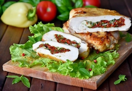 Що дає начинка? Не секрет, що в м’ясі грудки мало жиру, тому страви з неї не виходять соковитими, що багатьом не подобається. Крім незвичайного смаку, додаткові компоненти допоможуть сухуватою грудці стати ніжною і соковитою. Кладіть різні овочі: солодкий перець, картоплю, помідори. Крім сиру, використовуйте гриби. Дуже смачно виходить, якщо фарширувати грудку фруктами: ананасами, персиками, абрикосами. А рецептами я із задоволенням поділюся.