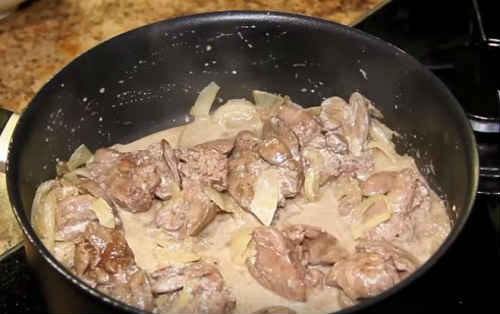 Куряча печінка, смажена зі сметаною – простий рецепт