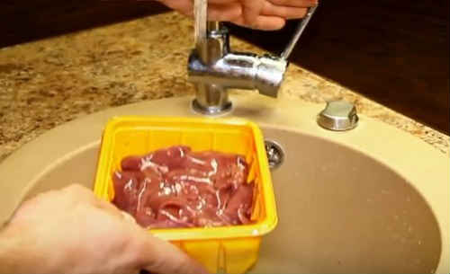 - Підготуйте до роботи печінку: промийте, просушіть, зріжте непотрібне.