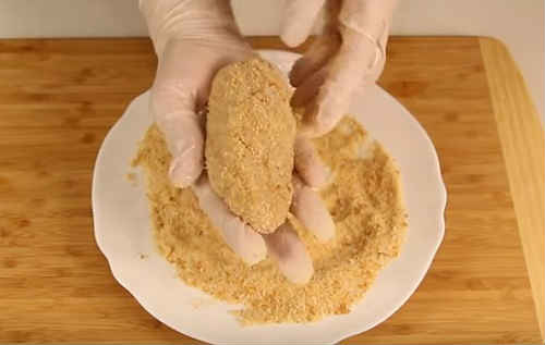 Запаніруйте напівфабрикати сухариками.