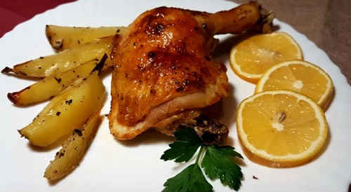 При бажанні, використавши цей рецепт, стегенця з картоплею можна запекти в рукаві або під фольгою.