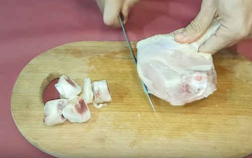Підготуйте стегенця до запіканню. Зріжте все зайве, якщо вважаєте калорії, то зніміть шкірку. Обполосніть шматочки, підсушіть паперовою серветкою. Кожен шматочок проткніть в декількох місцях виделкою, тоді м’ясо швидше замаринується.