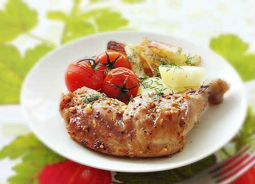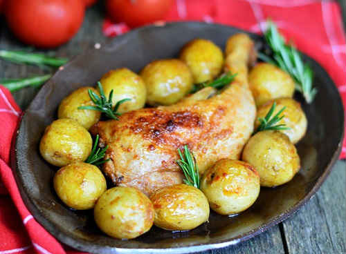 Якщо засмажити стегенця разом з картоплею, то можна вбити відразу двох зайців. Ви отримаєте смачне м’ясо і гарнір, просочений соками курки.