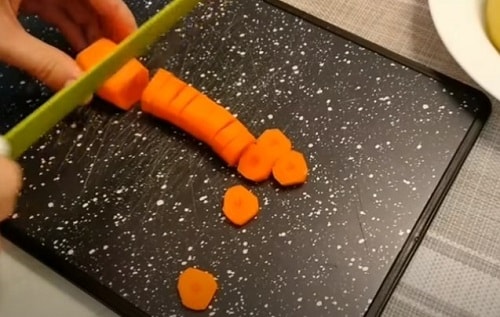 Покришіть моркву кільцями, складіть в миску.