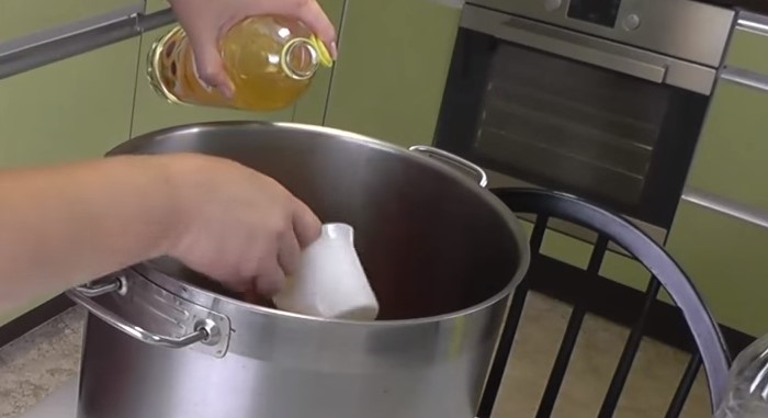 6. Перед відкриттям автоклава робимо контрольний спуск тиску, відкриваємо кришку і зливаємо воду. Щоб усередині приладу не утворювався наліт від води, перед приготуванням в рідину додається стопка столового оцту.