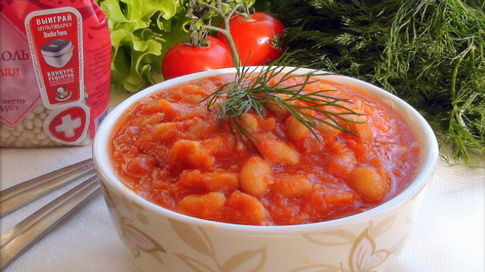 Відео про те, як приготувати смачну квасоля в томаті без овочів в мультиварці